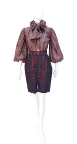Classic glam cut dress where the balance of the silhouette makes the femininity of the woman have a great visual impact.