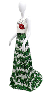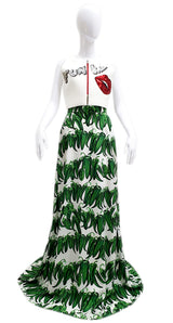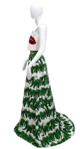 2-piece set classic and minimalist cut from the COLORFULGLAM collection, where comfort and color are paramount. Mix of materials such as neoprene and printed silk, where neoprene is a precursor in ready-to-wear garments, providing the feeling of comfort of sportswear, in a totally chic and elegant style.