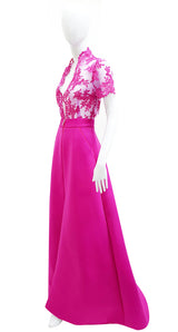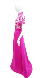 Vestido de corte clásico de la colección COLORFULGLAM, donde priman la comodidad y el color. Una mezcla de materiales como el neopreno y el encaje, donde el neopreno es el precursor de las prendas prêt-à-porter, aportando la sensación de comodidad de la ropa deportiva, en un estilo totalmente chic y elegante.